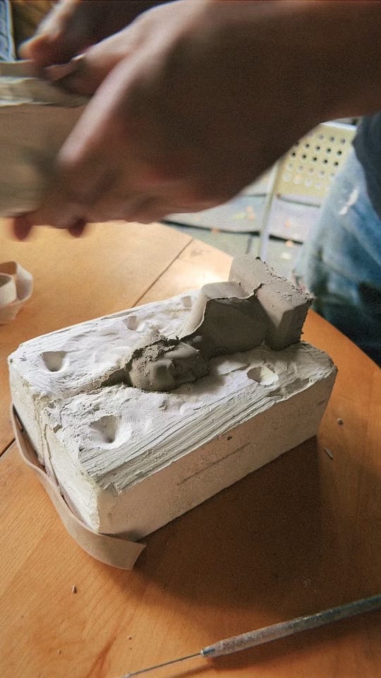 In ceramics, I’m discovering a new language of form and texture, where techniques like slip casting and hand-building carry new weight. The material’s malleability invites exploration, allowing me to play with scale, surface, and structure in ways that feel both meditative and dynamic. This work has brought a deeper sense of purpose to my practice. As I’ve transitioned away from social practice in recent years, engaging with materiality has helped me approach ecological themes from a place that feels connected and grounded.